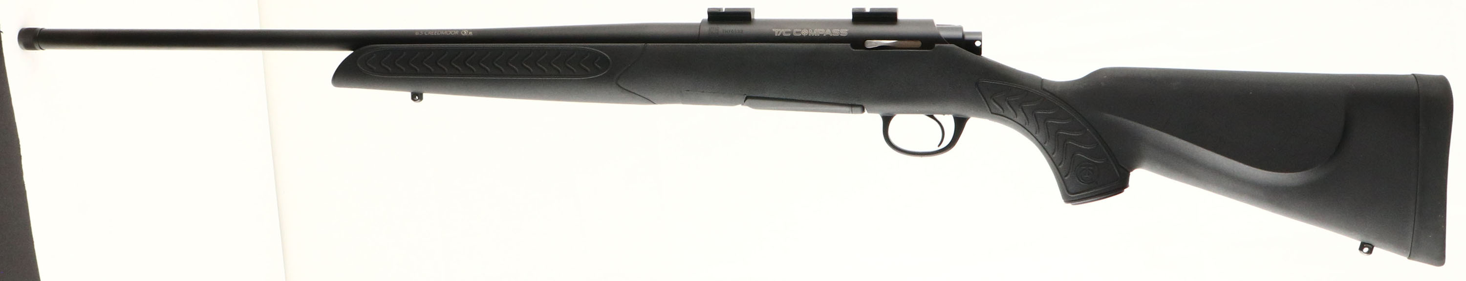 Thompson Center Arms, (Smith & Wesson), Model Compass, CAL: 6.5 Creedmoor, MFG: Modern, SN: THY6533, Bolt Action Rifle, 21 1/2'' tapered barrel, with threaded tip. The original flat pistol grip composite stock, w/ textured panels, is excellent, with very little usage. The original metal finish rates near mint. Bore is excellent. The receiver holds scope blocks & no open sight provisions on the barrel. Factory sling studs. Stock carries a solid rubber TC recoil pad. Detachable mag. An excellent all weather & quality hunting rifle. FFL Req. - Value: 300 to 400