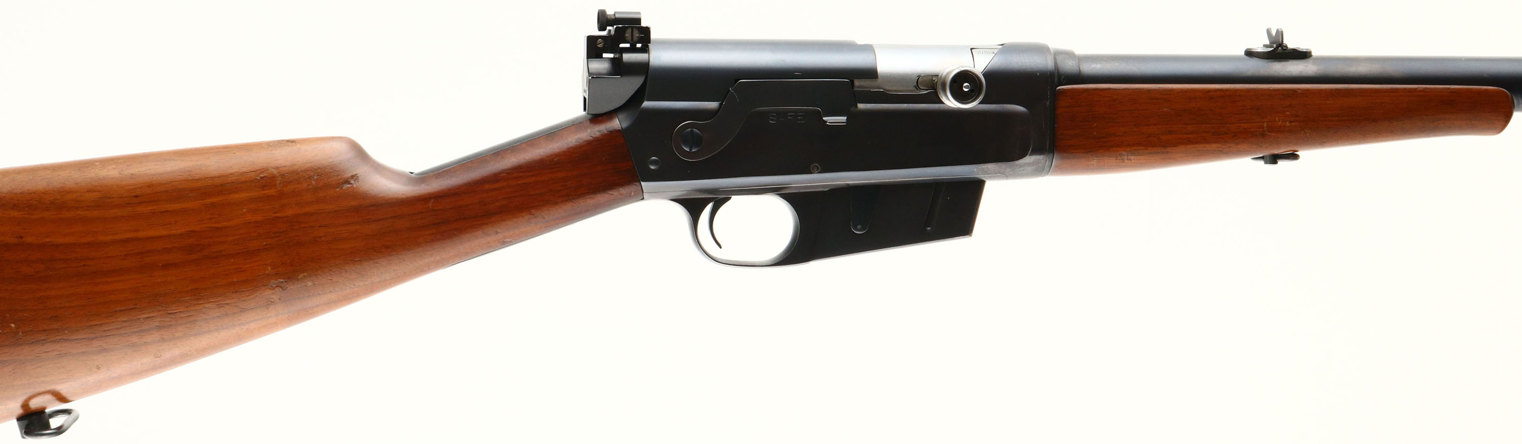 Remington, Model 8, .30 Rem Cal, MFG. 1933, SN: 66735, Semi-Auto Rifle, 22'' barrel. The left side of the barrel carries not only the manufacture date stampings, but a repair code from where the rifle was returned to the factory for unknown repair or upgrade. These repair stampings typically are a 3 or 4 digit code ending in ''3''. In this case, I believe the repair or upgrade was for blue restoration or at least it was a part of the process as the blue has been nicely restored to Remington standards & color, with a bit of thinning to some of the original stampings. The blue rates 98% overall & is excellent. The original straight grip & schnabel forend stocks are excellent, with both appearing to carry the original finish. There are minor scuffs, scratches & contusions to the wood & finish. Bore is excellent. The receiver is fitted with a Williams receiver/tang sight that fits into the factory tang screw hole, but also requires two additional holes to be added to the receiver for mounting & stability. The barrel is fitted with a folding two leaf rear sight on oval base & a Lyman half moon blade front sight, with ivory bead. Stock carries the popular bottom tang crescent metal buttplate. 5 round fixed magazine. Tight action. Sling loops. An overall excellent appearing rifle. FFL or C&R Req. - Value: 700 to 1000