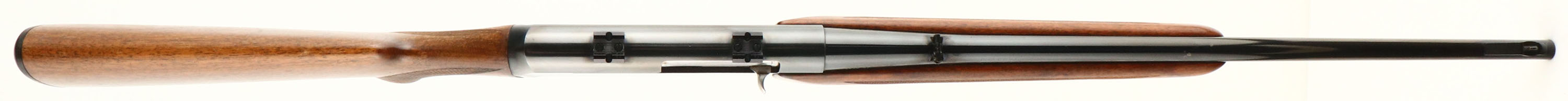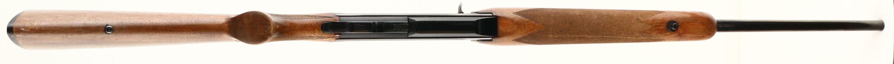 Browning, Model BAR, .30-06 Cal., MFG. 1967, SN: 4479M7, Belgium, Semi Auto Rifle, 22'' Round barrel, ''Patent Pending'' stamped on barrel, as it is an early 2nd year of production example. The factory checkered & flat knob pistol grip walnut stocks are very good, but the factory high gloss finish is worn & thinned to about 50% remaining. There are several small scuffs, scratches & contusions. The checkering remains very good. The original high polish metal blue finish retained at 90% on the barrel, with a handful of small warn spots top of mid barrel. The blue rates 80% on receiver, with areas of loss found primarily on the forward belly of the receiver. Bore is excellent, The top of the receiver is factory drilled & tapped & carries scope mount blocks. The barrel carries a folding leaf rear sight & standard ramped blade front sight. Hinged floorplate, with detachable box mag. The stock carries a Browning plastic buttplate & sling stud provisions. Comes in a period correct ''Browning Gold'' zipper case. A very good & popular hunting rifle & caliber. FFL & C&R Req. - Value: 400 to 800