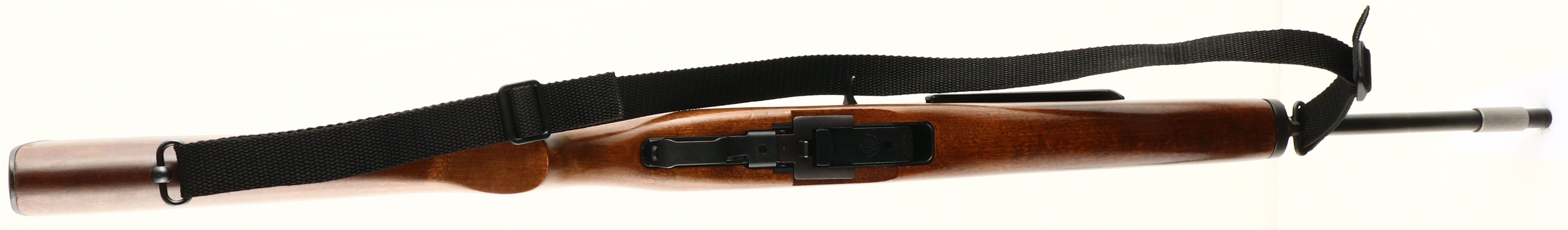 Ruger Model ''Mini 14'', CAL: 223, MFG: 1996, SN:186-71456, Semi-Auto Rifle, 18 1/2'' round barrel. The flat pistol grip wood stock is excellent with a couple of light surface blemishes to the original finish. The original metal blue finish rates 99%. Bore is excellent. The rifle carries the original adjustable receiver & large blade front sights. Stock carries a smooth plastic carbine buttplate. Sling swivels, with nylon sling. Detachable factory mag. Excellent overall condition. FFL Req. - Value: 800 to 1200
