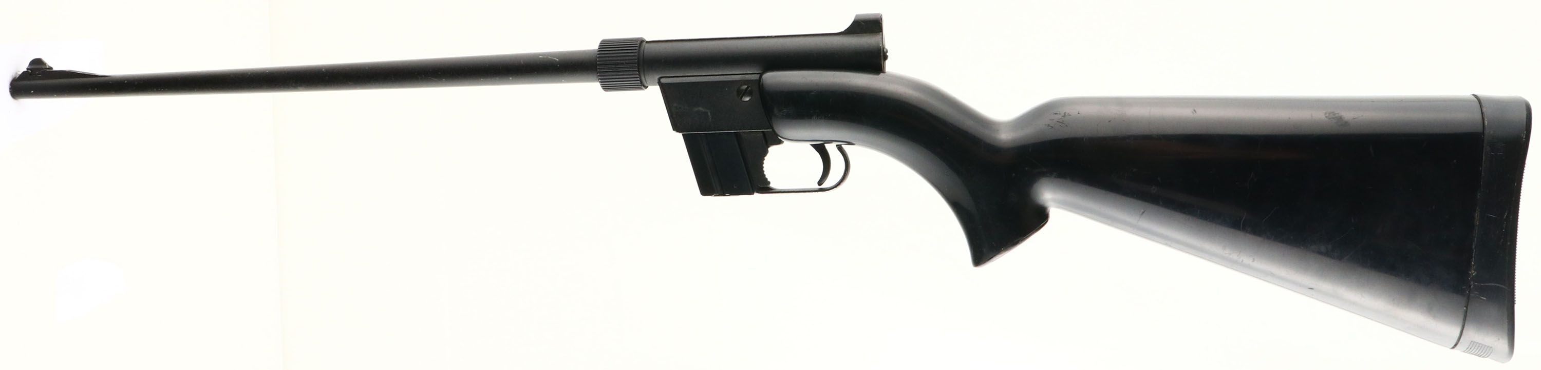 Charter Arms, Model AR-7 Explorer, CAL: .22 LR, MFG: 1973-95, SN: A193928, Semi-Auto Rifle, 16'' detachable barrel. The factory flat pistol grip, black synthetic stock is very good, with numerous minor to small scuffs or scratches. The original metal blue finish rates 85% on barrel, mag & receiver, which can all be dismantled & stored in the buttend of the stock. Bore is very good. Factory sights. Stock carries a black plastic buttplate or cap, which is removable to access the parts storage compartments. A great little backpack or survival rifle. FFL or C&R Req. - Value: 150 to 250