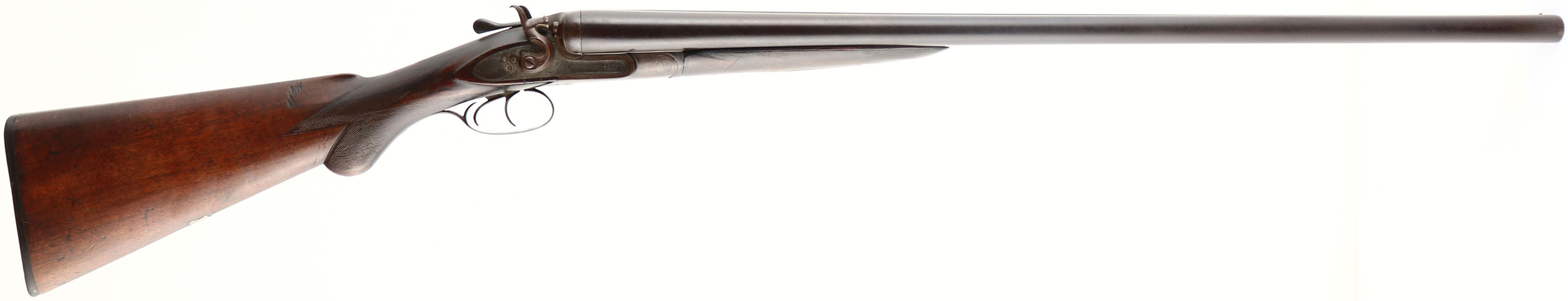 J.P Gemmer, Model 730, CAL: 10GA, MFG: 1890's-1915, SN: 39, Break Action SxS Shotgun, 30'' Laminated Steel barrels. The side plates are marked ''J.P GEMMER''. Birmingham proof marks on the water table. The barrel rib is marked ''JP GEMMER SANT LOUIS MO LAMINATED STEEL''. The original checkered round knob pistol grip & ebony tip forend are good & solid. There are a couple popped grains, edges chips, thin checkering, scrapes, dings & darkening from protective oils added over time. There is a blank silver shield nameplate in the belly of the stock. The laminated steel barrels have fully toned to a brown patina, with consistent spotting. The receiver & side plates have worn to metal gray & toned to a brown patina. The receiver, side plates, trigger guard, hammers, break lever & forend release lever all display ornamental scroll engraving. Some areas of the engraving are beginning to wear thin. There are bid vignettes on both side plates, behind the hammers. Bores are fair, rough, with pitting near the chamber. The solid rib holds a single front bead. Stock has a carved & checkered hard rubber buttplate, with a couple edge chips. Hammers & triggers function properly & lock up tight. Break lever has to be manually reset to the middle after breaking the barrels. In the mid 1800's Gemmer & a group of gunsmiths took over the Hawken shop in St. Louis. He went on to run the business until 1915, before passing in 1919. FFL or C&R Req. - Value: 800 to 1300