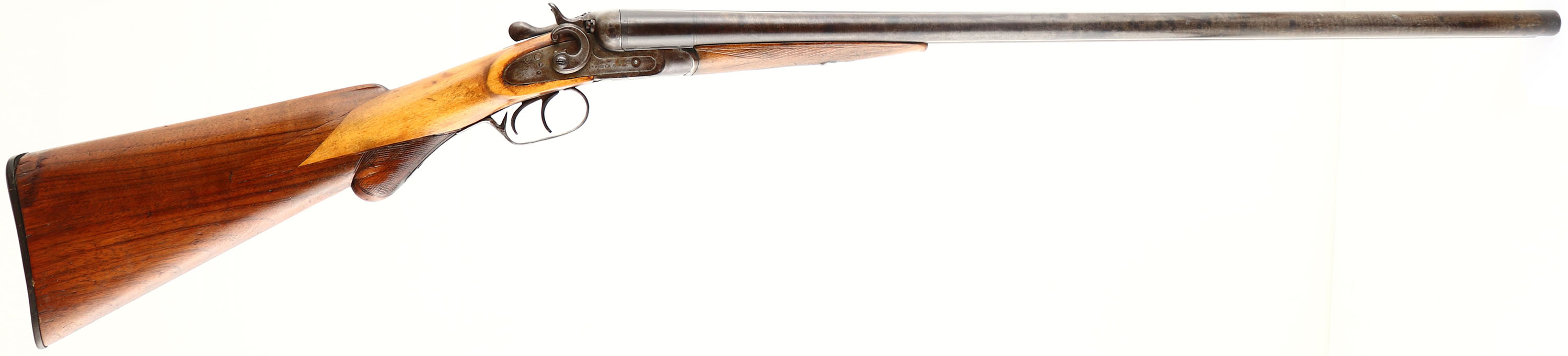 Pieper Arms Co., Model ''Modified Diana'', CAL: 12GA, MFG: 1900's, SN: 09206, Break Action SxS, 28'' Laminated Steel barrels. The side plates are marked ''PIEPER ARMS CO''. The checkered round knob stock is fair. The buttstock has been spliced together using multiple pieces of wood. It's been sanded, with added varnish. The laminated steel barrels have fully toned to a brown patina, with areas of spotting toned to a dark brown. The laminated steel pattern is still visible. The case-hardened receiver has worn to metal gray & toned to a brown patina, with case-colors remaining in heavily protected areas. There is varnish from the wood on some of the metal surfaces. Bores are good, with roughness & some light pitting. Solid rib holds a single front bead. Stock has a checkered plastic buttplate. Hammers lock back, with a small amount play & both triggers function. Some play between the barrels & frame when locked. FFL or C&R Req. - Value: 200 to 400