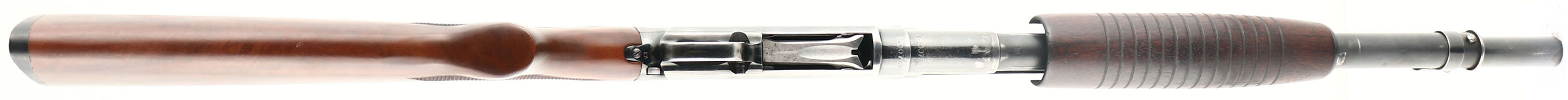 Winchester, Model 12, CAL: 12 GA, MFG: 1954, SN: 1600758, Pump Action Shotgun, Choke: FULL, 3'' Chamber, 20 1/4'' No rib barrel. The checkered & flat pistol grip wood stock is an excellent replacement from Boyd's. The grain is fantastic, with fit & finish being excellent & are just a couple of fine line scratches to the original finish. The original forend is excellent, with some tiny edge chipping along the back left edge. The finish has darkened with age, wear & oils. The original metal blue finish rates 75% overall. Bore is excellent. Single front bead. Buttstock carries a Boyd buttplate, with 14 1/4'' LOP. FFL or C&R Req. - Value: 300 to 600