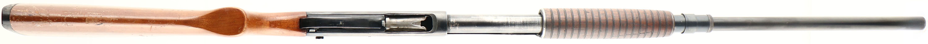 Noble MFG Co., Model 66J, CAL: 12 GA, MFG: 1967, SN: None, Pump Action Shotgun, Full, 28'' barrel. The smooth pistol grip stock & corn cob forend are very good & solid. The stock has a 2'' stress crack at the left wrist, along with several small scrapes, scratches & contusions the wood's original finish. The original metal blue finish rates 80% overall. Left side of receiver has a replacement screw. Bore is excellent. The stock carries the original plastic buttplate. Barrel carries a single front bead. The pump action slide bar was damaged & repaired. Works well, but repair is visible. FFL or C&R Req - Value: 100 to 200
