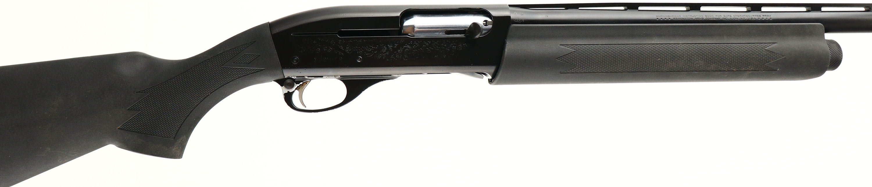 Remington Model 11-87 Premier, CAL: 12 GA, MFG: 1987-2000, SN: PC684873, Semi-Auto Shotgun, Choke: Screw-in choke tubes, currently MOD, 3'' Chamber, 27 5/8'' Matted ventilated rib barrel. The receiver has simple ornamental/floral roll stamp etching. The checkered & flat pistol grip synthetic stocks are excellent, displaying minor rubs. The barrel & receiver carry an added dark black spray on finish over the original finish, with some pit scarring under the finish. The finish rates 99%. The original Japan black finish on the trigger guard rates 80% with loss to edges & some flaking. Bore is excellent. Mid silver bead & white front bead on rib. The buttstock carries a factory Remington solid recoil pad. LOP: 13 3/4''. Sling stud in stock. FFL Req. - Value: 200 to 400