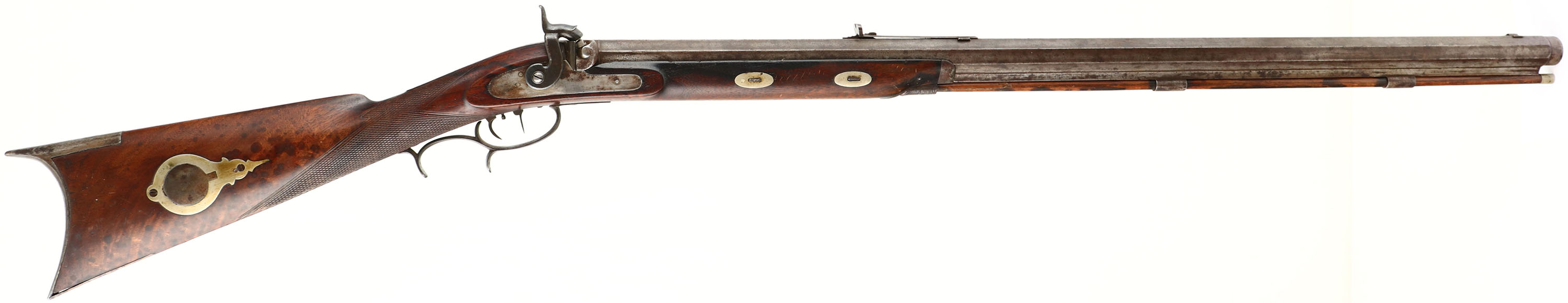 RARE!! John Bach of San Francisco California, Model: Plains/Buffalo rifle, Cal: .50, MFG: Circa 1850's, S/N: None, Percussion muzzleloader, 34'' octagon barrel, goes to round at muzzle.
