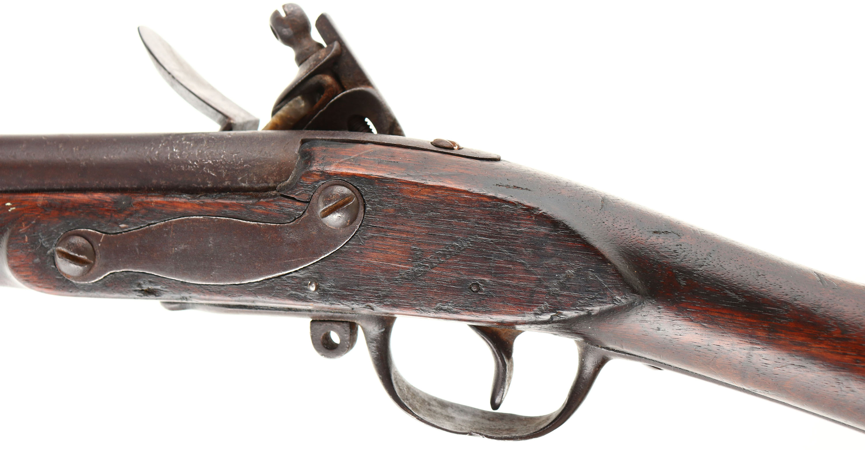 HISTORY: The M1795 Musket was the first musket produced by US arsenals, Springfield & Harpers Ferry. It was heavily based on the Charleville Model 1763/66 which had been imported in large numbers & used extensively by the US during the revolutionary war & was the most numerus musket in Americas arsenal. It would continue to be updated & new models would come out. approximately 80,000 rifles were made at Springfield from 1795-1818 when the new model took over production. These would be used clear until the civil war & as Percussion systems became available, they were retrofitted with them. This rifle has the ''PM'' mark on the barrel which is the official acceptance mark of the Massachusetts Militia, thought to stand for ''Proved Massachusetts''. The rifle is a mix of models of parts, common as old parts would not go to waste. It has a type 2 trigger guard & a type 3 lock. With this rifle being 214 Years old, it is a tall feat that it still exists & still in intact condition. A nice piece of American history that is almost as old at the country.