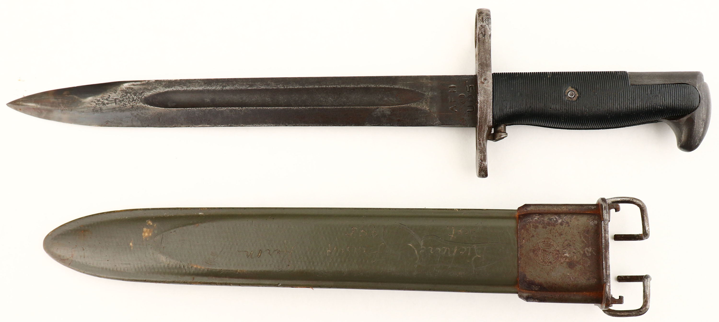 Springfield Armory, Model: M1 Garand CMP rebuild, Cal: .30-06, MFG: May 1942 (2015 Rebuild), S/N: 661330, Semi-auto rifle, 24'' barrel. The Semi-pistol grip, CMP stock is excellent with little to no wear. The left side of the stock above the trigger is stamped ''CMP'' over American great eagle, in a box. The parkerized metal finish 96% with light wear & scratches. There are spots of cleaned pitting under the finish from when it was rebuilt by the CMP. The rear of the receiver is marked ''U.S. RIFLE'', ''CAL. .30 M1'', ''SPRINGFIELD'', ''ARMORY'', & the S/N. the right side of the barrel, under the OP rod is marked ''CBI 6535448 1-10 07/15 5C''. The bore is excellent. Bright & mirror like with little to no wear. Four groove rifling. The CMP card that comes with the rifle gives this a muzzle & throat wear rating of 0. the barrel holds a blade front sight with protective ears. The rear of receiver holds a fully adjustable aperture rear sight. The stock carries a checkered, parkerized steel, trapdoor buttplate, has grease bottle & M3 tool inside. Rifle has both sling swivels & third stacking swivel. Rifle comes with a M1 bayonet with sheath. Blade marked AFH, sheath is had etched ''RICHARD FRANK HERON'', ''SEPT. 1945''. This rifle is accompanied by the original CMP case. FFL or C&R Req. - Value: 1200 to 2400