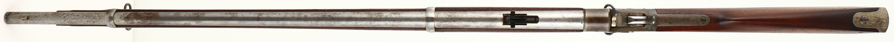 HISTORY: After the civil war the US Ordnance Department wanted to standardize on one rifle & one cartridge & would begin trialing for it. This would start with Allens early trapdoor conversions. Rolling block rifles carbines were praised for their simplicity & strength during the Civil war & were remembered by the Ordnance department. In 1866 the Ordnance Department contracted for Remington to mate 504 of their Rolling Block receivers with surplus US M1861/63 musket barrels & furniture for trial use. These were well received & the Navy contracted for 5095 rolling block carbines (1867 model) & 498 cadet rifles. All the receivers for these rifles were made by Remington & Springfield, barreled the actions & put the furniture on. In 1870 the Army would conduct another trial of the rolling block. This is the rifle we have here, these are marked 1870 for their MFG date. 1008 rifles & 313 Carbines would be made for this test. These again were Remington made receivers, with new production M1868 rifle barrels & parts that Springfield put together. These tests would show it was more accurate than the M1868 rifle, but the action let water & dirt in easily. There would be more tests done on the rolling block but ultimately in 1873 the US would adopt the trapdoor Springfield. A big part of adopting Springfield is not having to pay royalties to Remington Since it was designed by the master armory of Springfield at the time & thus the government owned the rights to the design. A very rare & seldom seen American trials rolling block.
