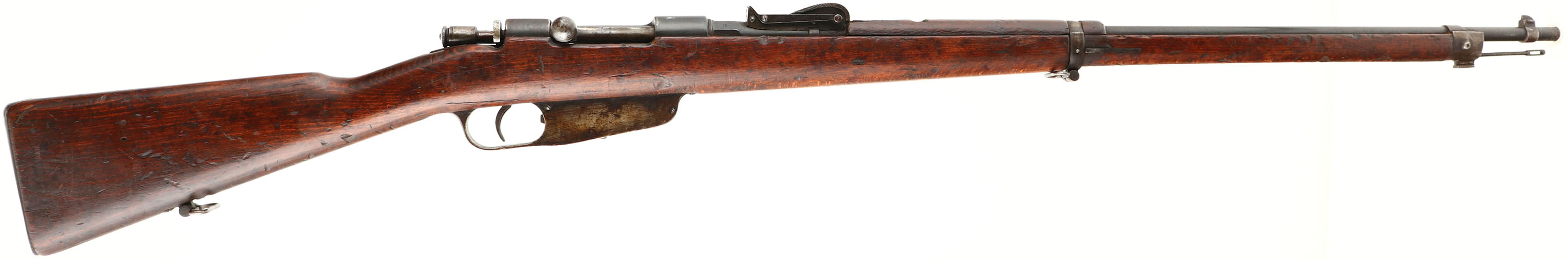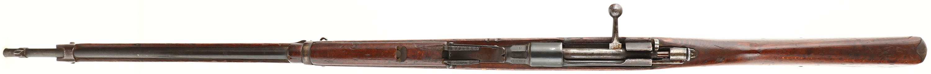 R.E. Terni, M1891 Carcano infantry rifle, Cal: 6.5x52mm Carcano, MFG: 1918, S/N: IR3788, Bolt action rifle, 30 5/8'' barrel. The straight wrist walnut stock is very good with numerus nicks, dings, & scratches from use/age. The left cheek of the stock is marked with a faded Terni Arsenal military acceptance stamp with the date ''18'' (1918), & its marked with the S/N. the blued metal finish on the receiver rates 75% with spots of wear/thinning & brown patina. The barrels finish rates 70% with thinning, brown patina, & light rust speckling. The left side of the receiver is marked with a small proof. The rear of the barrel is marked ''18'', ''Terni'', the S/N, & two small proofs. S/N mismatched bolt. The bore is very good. Its bright with spots of light roughness. The rifling on M91 Carcano (all pre M38) is a unique gain twist style of rifling. Where the twist rate starts slow & speeds up further down the barrel. It was done to help stop early throat erosion on the barrels. The later M38 models would use standard constant rifling as they realized it was a problem with the bullets & powder rather than the rifling. The barrel holds a tall barleycorn front sight with a tangent, deep V-notch rear sight marked 6 to 20. the stock carries a steel buttplate that's toned to a brown patina. Rifle has both sling swivels & has a cleaning rod. Rifle also comes with the correct m1891 Bayonet with sheath. Bayonet is S/N: 8537. a nice all original configuration Carcano long rifle. FFL or C&R Req. - Value: 250 to 500