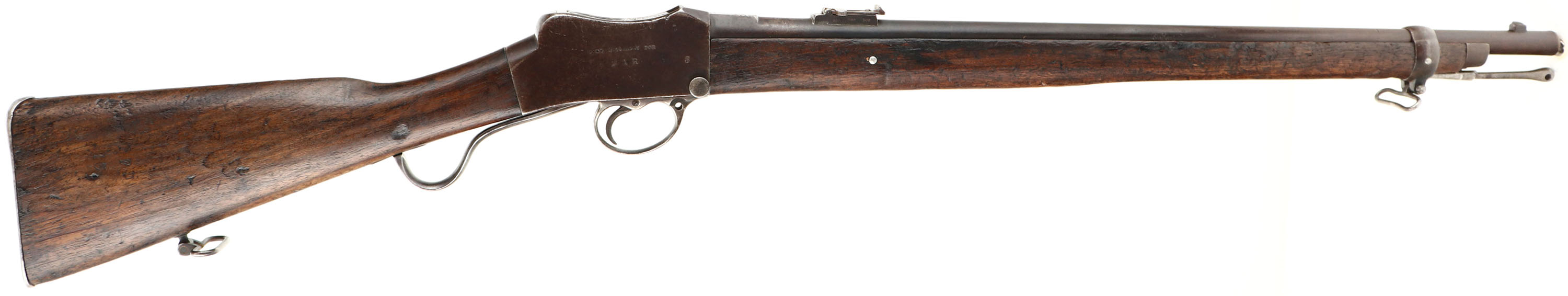 RARE!! Westley Richards & Co., Model: Type 2 Z.A.R. Martini-Henry Carbine, Improved Francotte breech, Transvaal Police Dept., Cal: .577/.450 Martini-Henry, MFG: 1897, S/N: 4752, Lever action single rifle, 25'' barrel.