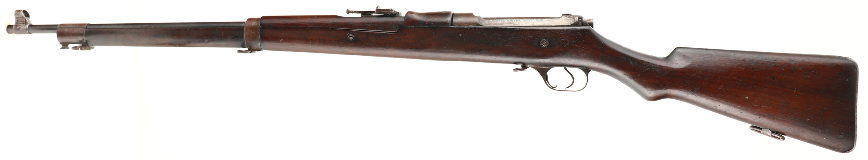 CONDITION: The semi-pistol grip wood walnut stock is very good with small nicks, dings, scuffs & scratches from use/wear. The bottom of the wrist is marked ''US'' & the S/N. the right cheek of stock is line out regiment & unit markings, as well as a Roundel cartouche marked with a crown at the top, ''D'' arrow ''C'' in the middle, & ''QUEBEC'' on the bottom. To the right of the Roundel is ''3*'' over ''II.'', ''842/1909'', ''RD''. The metal has mostly toned to a brown patina, with spots of gray, & thinned finish on the barrel. The left side of the receiver is marked ''ROSS RIFLE CO QUEBEC.CANADA.1905.'', ''PATENTED''. The bore is very good. Its bright with spots of light roughness. The barrel holds a hooded, square post front sight with a V-notch/aperture, flip up ladder rear sight. The stock carries a steel trapdoor buttplate. Has worn gray with spots of patina. Nothing inside trapdoor. Rifle has three sling swivels with a stacking loop. Comes with a Ross bayonet 1907 patent date, with sheath & frog. Bayonet grips have a bunch of crossed out numbers, with numerus other markings on the guard & pommel. FFL or C&R Req - Value: 1000 to 2000