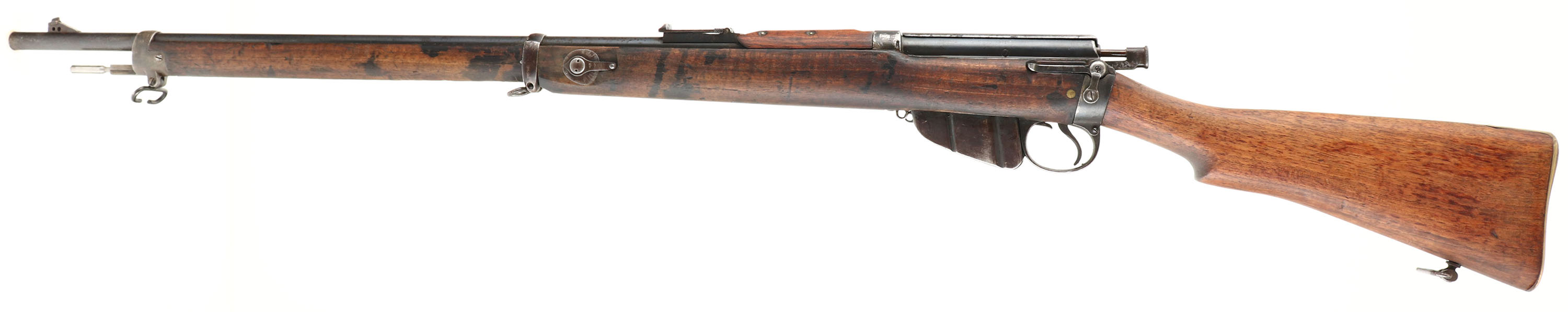 CONDITION: The semi-pistol grip wood stock is very good. The buttstock has been professionally cleaned up, with all markings looking untouched, and does not appear to of been sanded. The forend of the stock has a bunch of dark stains. Thew whole stock a various small nicks, dings, & dents from use/age. The right cheek of the stock is marked ''N.S.W.'', ''6/02'', lined out ''6619'', & ''95'', BSA WD roundel over ''II'', over ''I'', ''6619'', NSW roundel cartouche marked ''COMMONWEALTH AUSTRALIA MILLY FORCES'' around ''NSW''. The stock just ahead of the magazine is marked with a worn ''DP'' stamp. The blued metal finish rates 60% on the receiver with wear, scratches, & parts toning brown, the dust cover & a few spots of the receiver has rust speckling. The blued finish on the barrel rates 80% with spots of wear & rust speckling. The right side of the wrist band is marked with a crown over ''VR.'', ''B.S.A.&M.Co.'', ''1895.'', ''II.''. The left side of the receiver band is marked with a worn cross sword proof. The right side is marked with the S/N & a small proof, the S/N is partially obliterated with scratches/cuts, still partially visible. The top of the barrel is marked with a barely visible stacked rifles over ''B.S.A.'' logo. A bunch of small parts marked with small proofs like the mag, barrel bands, etc. S/N matching bolt. The bore is good. Its bright with consistent light roughness throughout & thinned rifling. Correct 7 groove Metford rifling. The barrel holds a small square blade front sight with a flip up ladder, V-notch rear sight marked 6 to 17. Rifle also still has its early flip up volley sights on the left side of the gun. The stock carries a brass trapdoor buttplate, bras has spots of patina. Nothing inside trapdoor. Rifle has both sling loops & third stacking swivel. Has a cleaning rod. Rifle comes with correct P1888 bayonet, MK I 2nd type, Sanderson MFG, base of blade marked with many proofs & late 1890s dates. A nice example of a typical Boer long-lee that saw use with British & Australian forces. ANTIQUE No FFL Req - Value: 800 to 1600