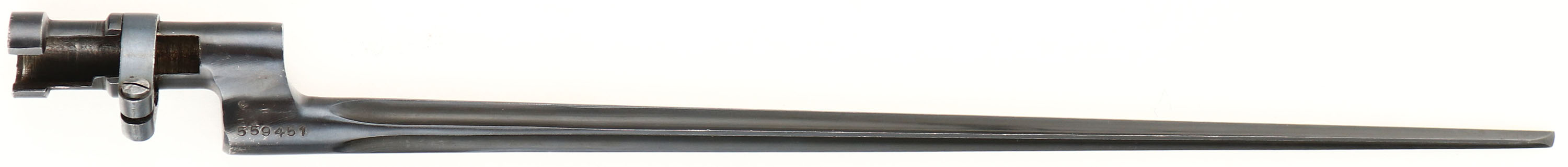 Remington, Model: M1891 Mosin, Cal: 7.62x54mmR, MFG: 1917, S/N: 572170, Bolt action rifle, 31 1/2'' barrel. The straight wrist walnut stock is very good as being lightly sanded & oiled. Stock has small nicks, dings, dents, & scratches. The right cheek of stock is marked with a lightly faded, Russian eagle Remington stock cartouche, indicating this is the original Remington stock. The bottom of the stock, Infront of the magazine, is marked with a faded flaming bomb over ''US'', US property mark. The metal has been re-blued & rates 85% on the barrel with spots wear & thinning. The receiver rates 80% with spots of thinning & brown patina. The top of the receive band is marked with a Russian imperial eagle over a Cyrillic ''P''. The top of the barrel is marked with a half buffed Russian eagle, ''REMINGTON'', ''ARMORY'', ''1917'', ''NO'', & the S/N. all parts are S/N matching, some S/N faint from cleaning. The bore is very good. Its bright with strong rifling, but has light roughness. The barrel holds a barleycorn front sight with a Konovalov rear sight. The stock carries a steel buttplate, toned brown with patina. Has both sling wells. Rifle has cleaning rod. Comes with correct Remington M1891 bayonet. FFL or C&R Req.
