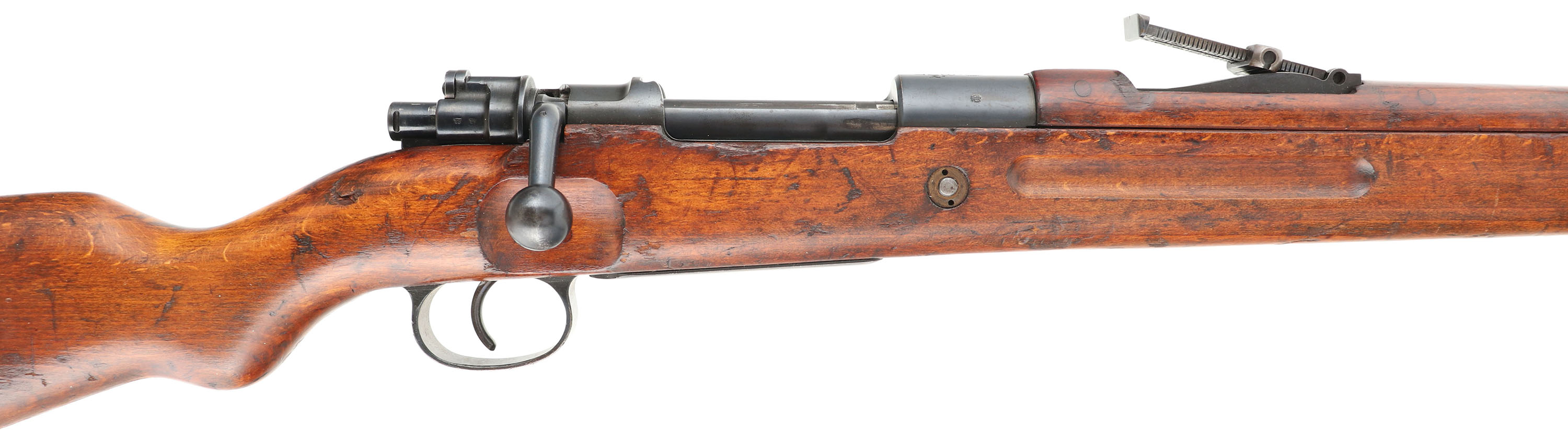 HISTORY: Production of the kbk wz.29 was done at the National Arms Factory in Radom between 1930 & September 1939 when the Germans invade. 264,000 were rifles produced of two models, a infantry model with a straight bolt handle, & a cavalry model with a bent handle. Some of these rifles were sold & exported to Spain & Afghanistan. Most of these rifles would be captured by the Germans after the surrender of Poland. Existing rifles would be put into German service with little to no modification since its close resemblance to the German K98k, these rifles would be called Gewehr 298 (p) in German service. The Germans would start production of the rifles again at the captured Radom factory under Steyr control, but would be modified exactly to K98k specs & would be marked G29/40. The K98k bolt in the rifle leads me to believe this rifle was refurbished by Germans later on & the cutout in the stock could have been done by them for use of a bent bolt handle, or it was originally a cavalry model so the stock already had the cutout. FFL or C&R Req. - Value: 1000 to 2000