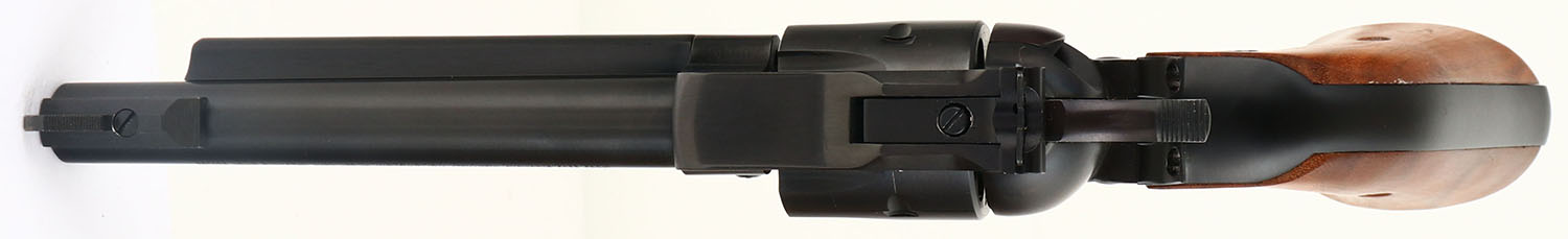 BOXED, Ruger, New Model Single Six - SSM (Single Six Magnum), CAL: 32 H&R MAG, MFG: 1985, SN: 650-10542, Double Action Revolver, 5 1/2'' barrel. The Ruger logo medallion wood grips are excellent. The metal blue finish rates 99% overall. Bore is excellent. Adjustable rear sight & elevated blade front sight. Comes in period correct box, with matching end label. FFL Req. - Value: 400 to 600