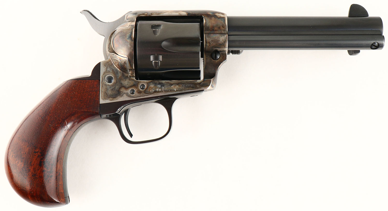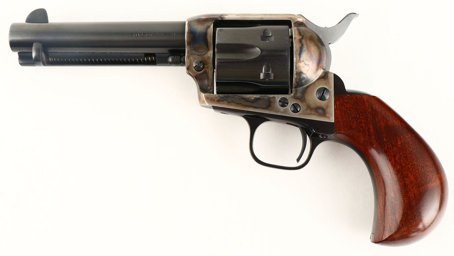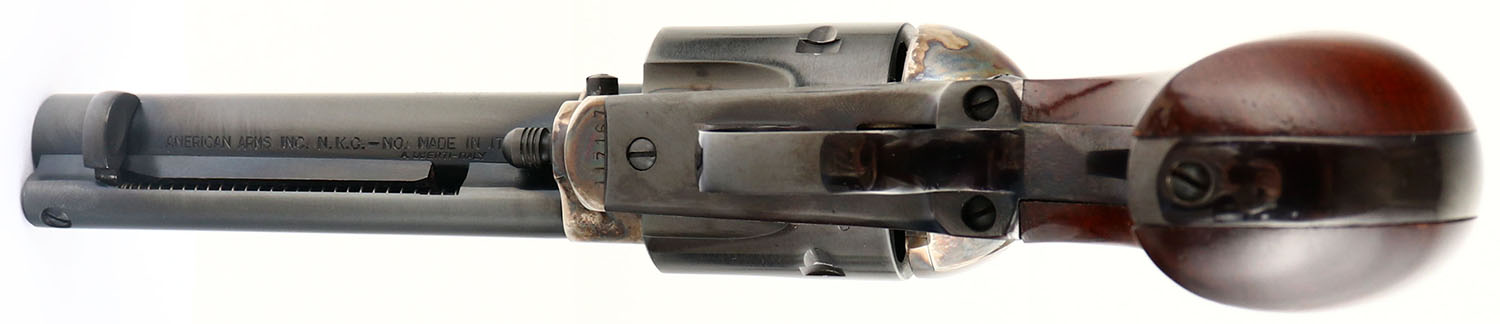 BOXED, American Arms Inc. (Uberti), Regulator, CAL: 44-40, MFG: Modern, SN: 117167, Single Action Revolver, 4 3/4'' barrel. The wood grips are excellent. The metal blue finish on the barrel, cylinder, & trigger guard rates 99%. The case-hardened frame retains excellent case-colors. Bore is excellent. Integral v-notch rear sight & blade front sight. Comes in original box. FFL Req. - Value: 250 to 450