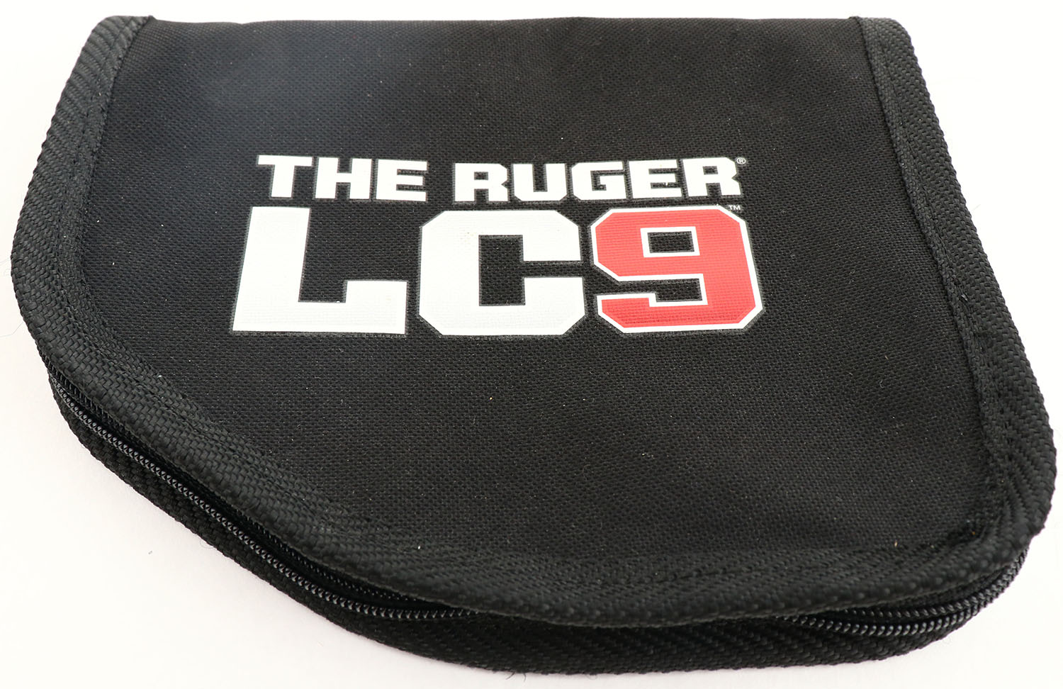 BOXED, Ruger, LC9, CAL: 9mm, MFG: Modern, SN: 320-13289, Semi Auto Pistol, 3'' barrel. The Ruger checkered polymer grip frame is excellent. The metal blue finish on the slide rates 99%, beginning to tone plum. Bore is excellent. Factory contrast sights. Comes in factory box, with related paperwork, soft case, extra mag, tools, lock/key & test fire cartridge. FFL Req. - Value: 250 to 400