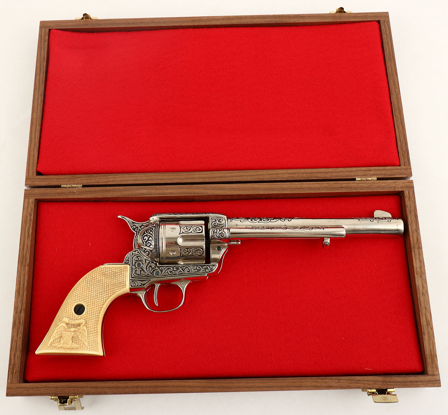 | MOVIE PROP Colt 1873 SAA, has been engraved, has wood display ca...