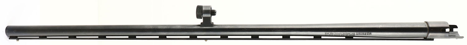Mossberg, 500/590, 20 Ga, 28 1/4'' barrel, modified choke, 3'' chamber, ventilated rib, white bead front sight, brass middle bead, blued finish rates 95%, the bore is good. Grade: Very Good ++ - Value: 20 to 200