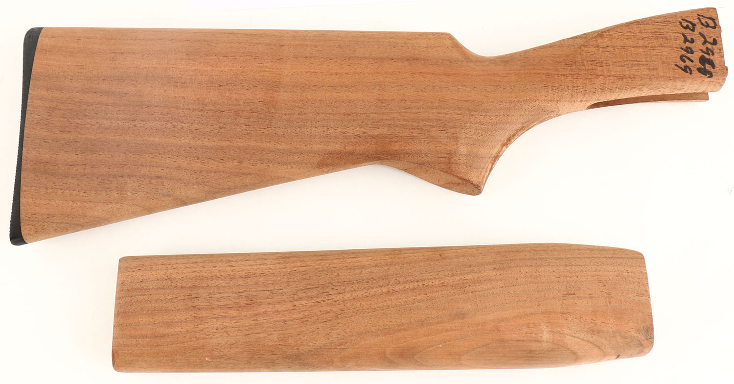 BOXED, Bishop Custom Stock for SxS shotgun. Excellent overall & unfinished, checkered black buttplate marked ''BISHOP'', stocks marked ''B2969''. Grade: Excellent - Value: 20 to 80