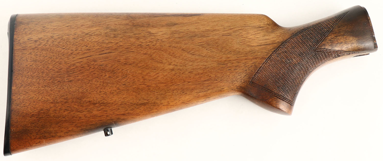 Browning BAR wood buttstock. One piece, checkered, added finish, Browning factory buttplate, rear sling stud. Grade: Excellent - Value: 30 to 100