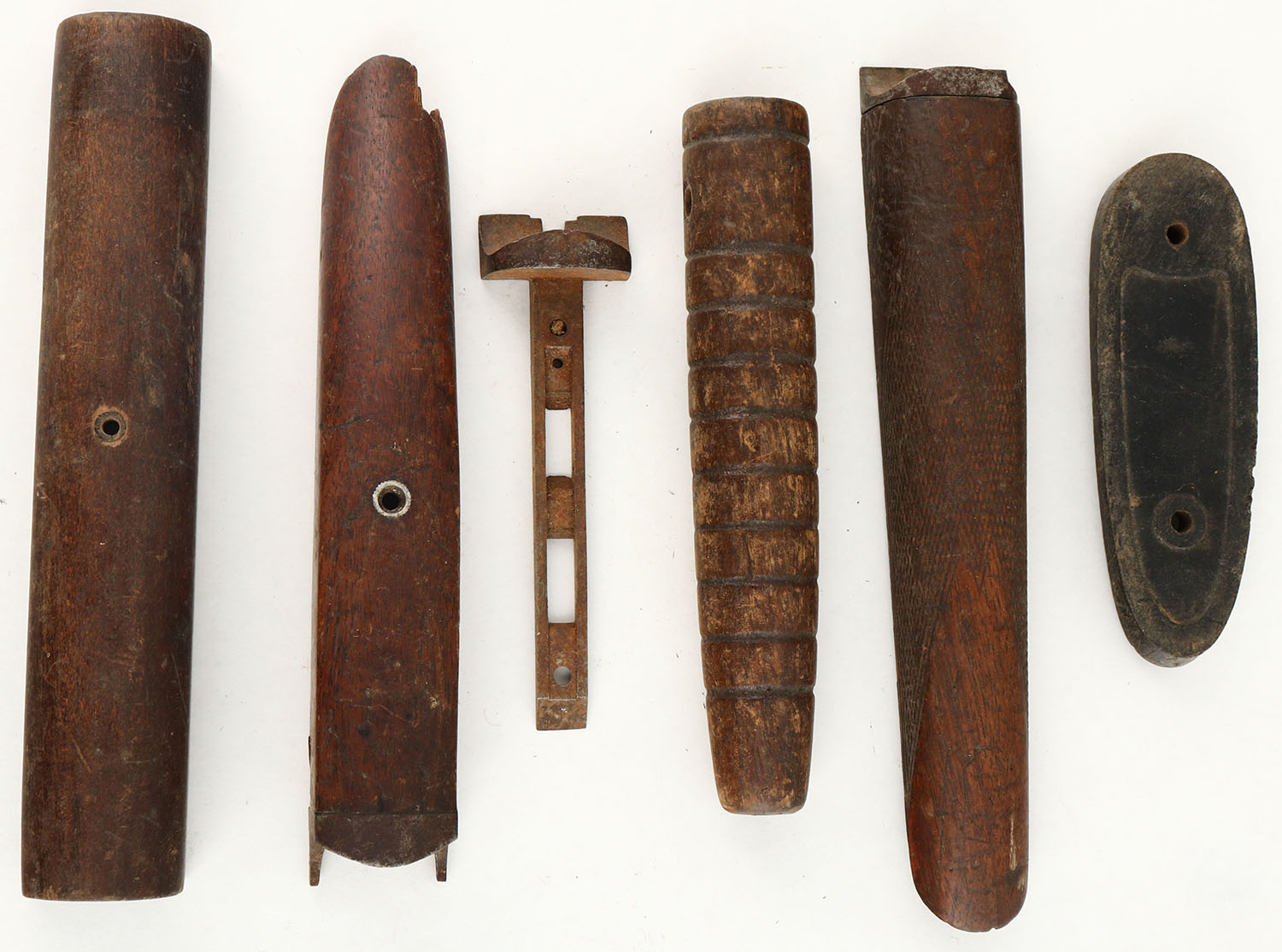 Gunsmith special, Lot of various mixed wooden forends & buttplate, has chips & cracks. Grade: Good ++ - Value: 20 to 120