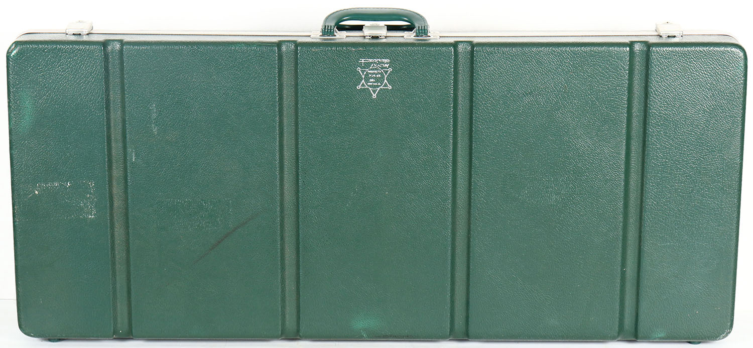 Vintage green safari gun case, locking but no keys, foam egg carton interior, measures 38'' x 16'' x 4''. Grade: Excellent - Value: 10 to 50