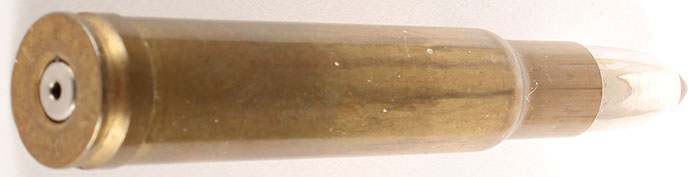 .33 BSA Belted Magnum. HS:''B.SsAs .33 K''. PT CN FMJ w/ copper tip. DUMMY w/ small hole drilled in primer. Grade: Very Good - Value: 40 to 80