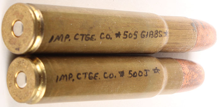 | Lot of 2. (1) 505 Gibbs Magnum, HS:''IMP CTGE CO * 505 GIBB...