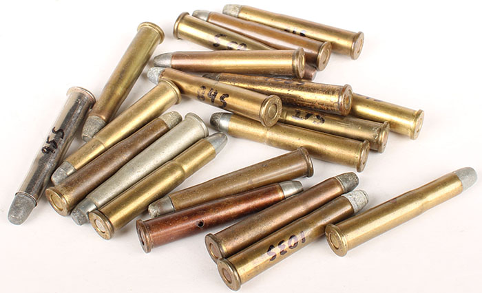 Lot of 20. 25-20 Stevens Single Shot. Various loadings by UMC, REM-UMC, Winchester, Peters & United States Cartridge. Various bullet loadings. Includes 2 different dummies by Winchester, 1 proof round by Winchester and 1 nickel case by UMC. See Photo. Grade: Very Good - Value: 50 to 100
