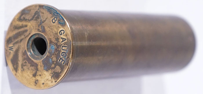 NPE, HS: W 8ga, brass case, no primer. Grade: Excellent - Value: 6 to 30