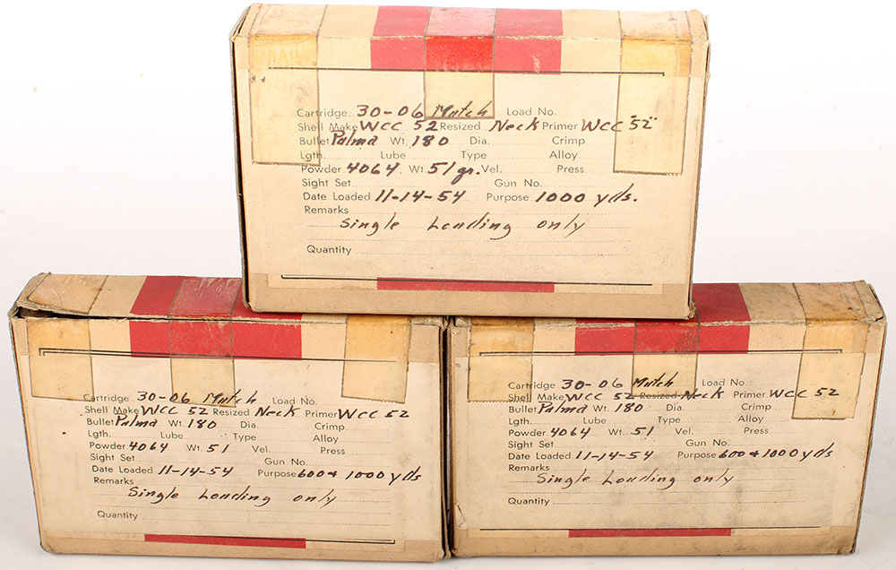 | Lot of three, Military Handloaded, .30-06 Match, Palma bullets, ...