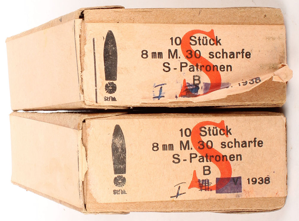 | Lot of two Austrian, 8mm M.30 Scharfe S-Patronen (8x56mmR), 10 R...