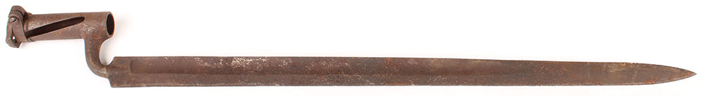 Large blade socket bayonet, covered in rust & patina, blade shank is marked ''VIII 9779'' on the right, & a faint proof on the left. Blade is 23 3/8'' long, OAL is 28'', socket is 4 5/16'' long with a .88'' inner diameter. Grade: Good ++ - Value: 20 to 80