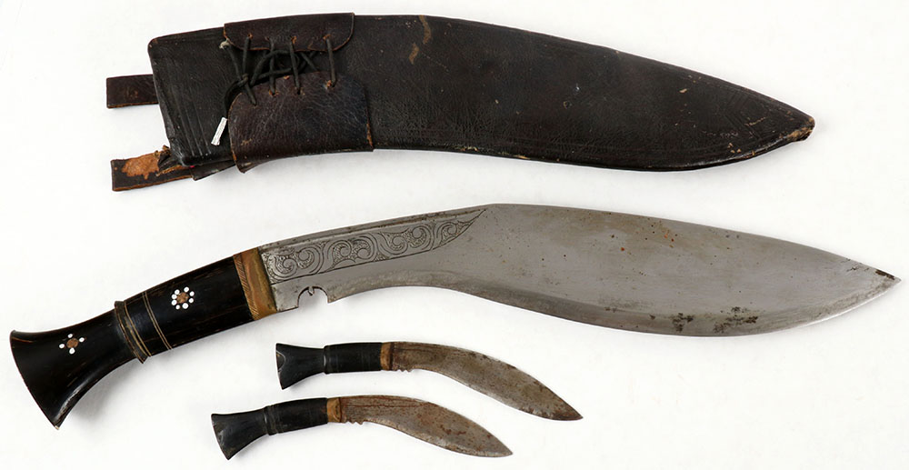 | Nepalese, Gurka, Kukri set, with one large knife & two smaller ...
