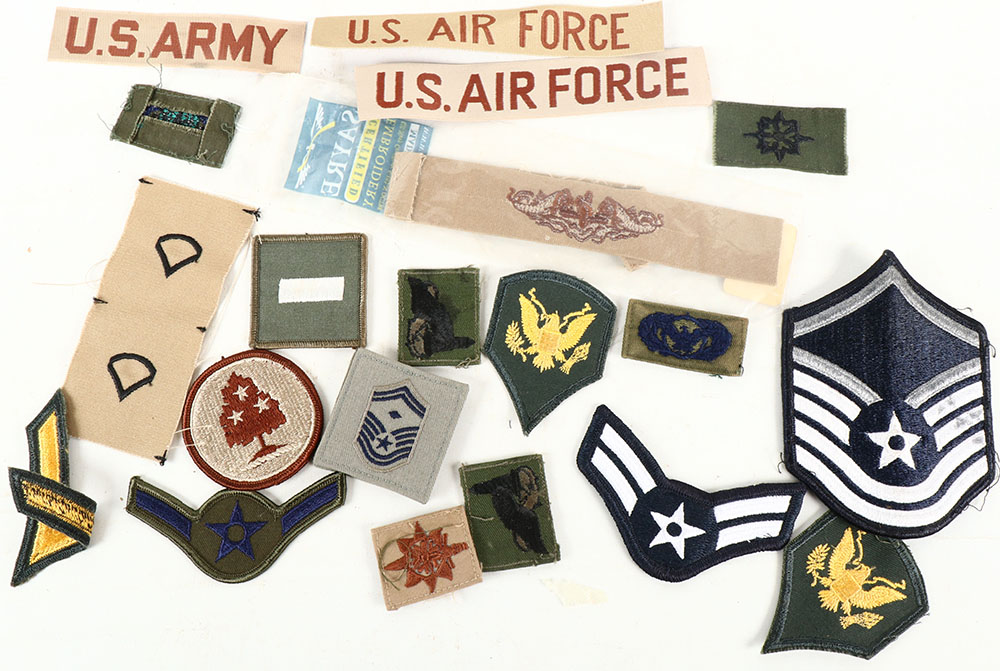 Large lot of US Military patch's, emblems, & rank insignia. Grade: Excellent - Value: 2 to 20