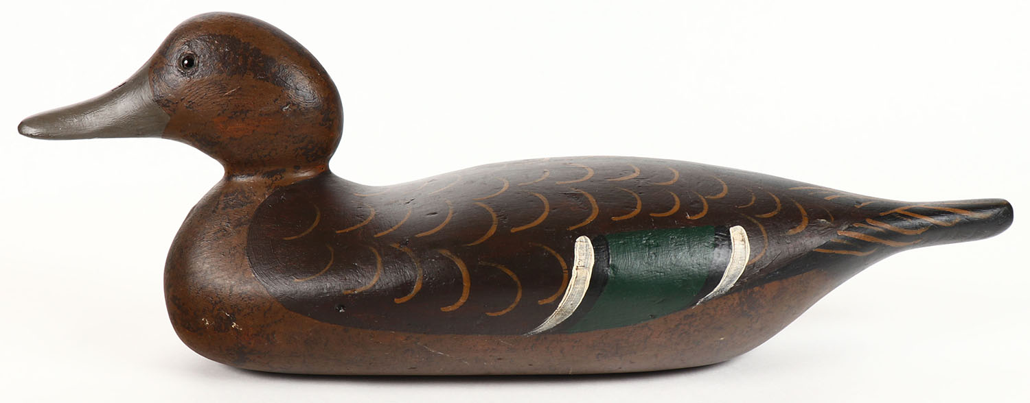 Pintail Hen by Mason Decoy Company, Detroit, MI, 1896-1924, Standard Grade, glass eyes, repaint, solid wood, 16 1/2'' OAL. Grade: Excellent - Value: 30 to 100