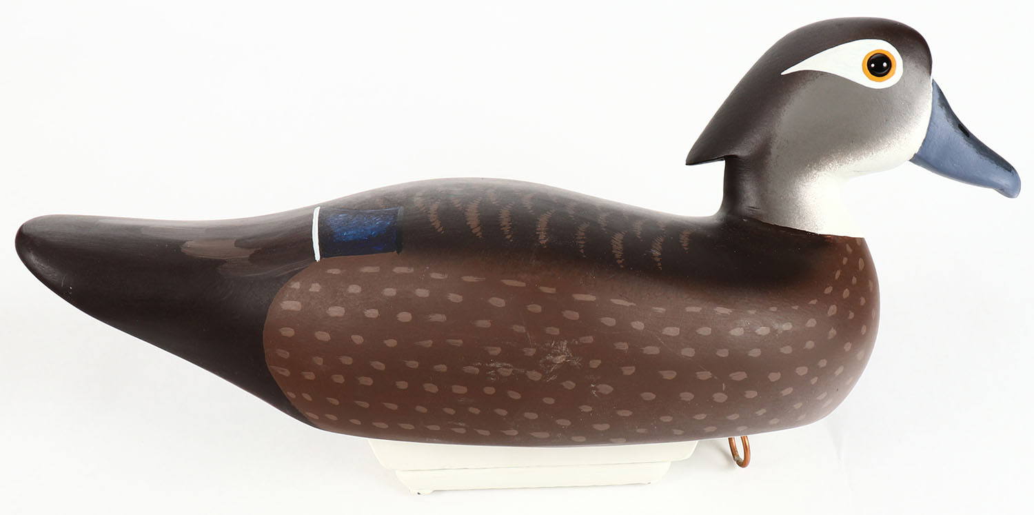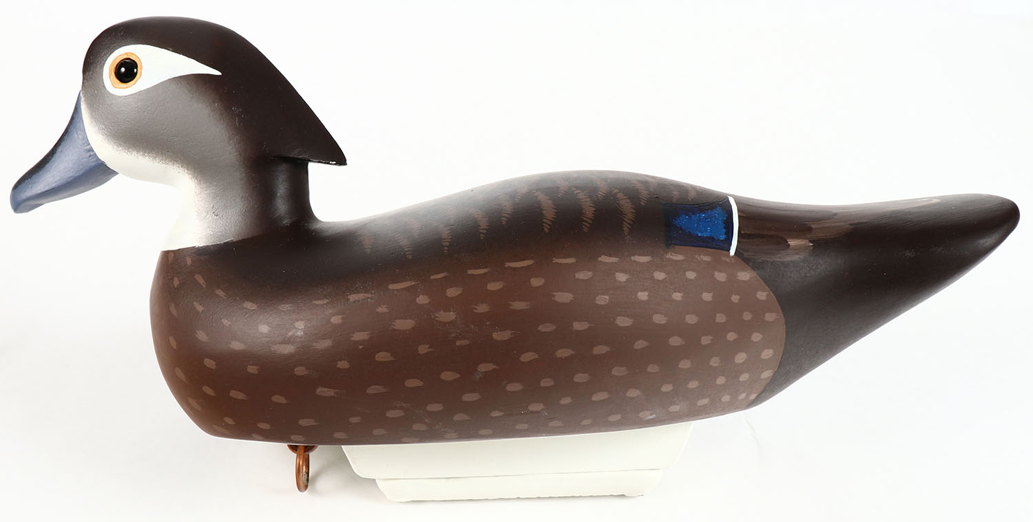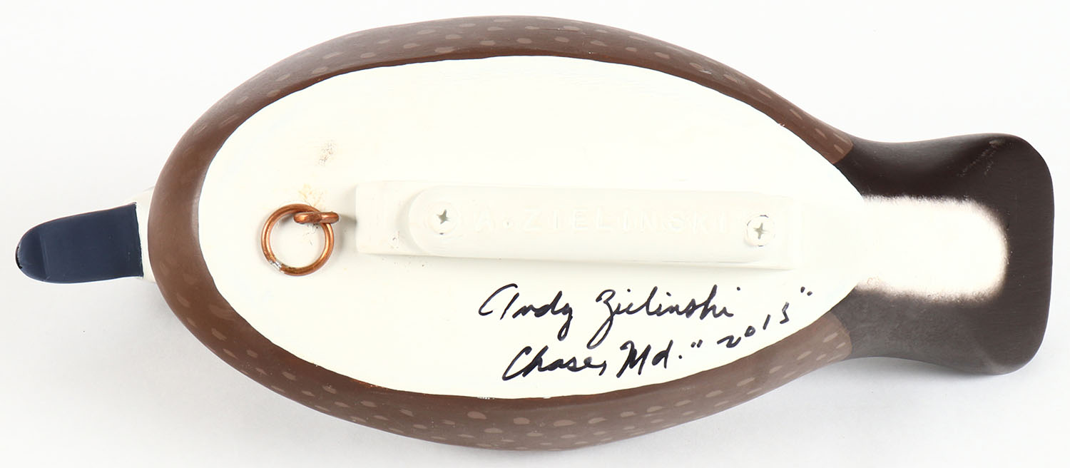 Woodduck Hen by Andy Zielinski, Chase, MD, painted eyes, solid wood, original paint, structurally excellent, signed on bottom, 13 1/2''. Grade: Excellent ++ - Value: 40 to 80