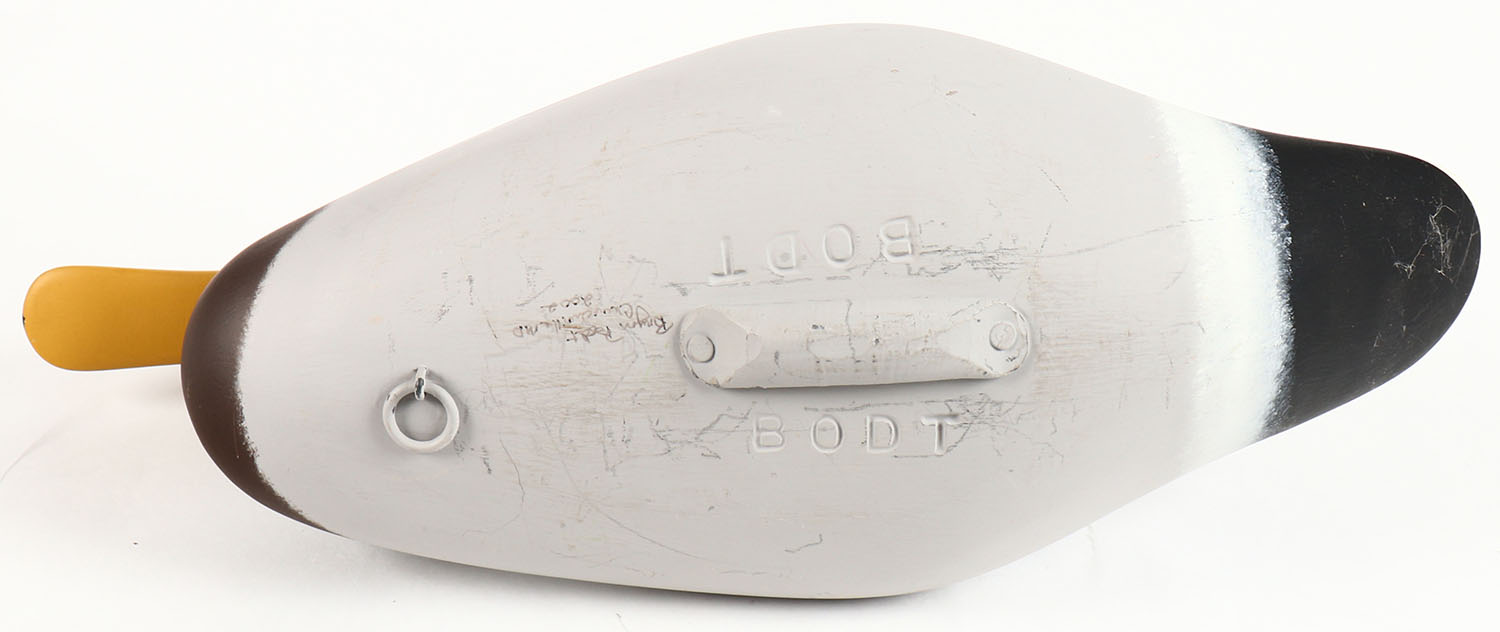 Mallard Drake by Bryan Bodt, Havre De Grace, MD, painted eyes, solid wood, original paint, structurally excellent, branded BODT on bottom, 16'' OAL. Grade: Excellent ++ - Value: 30 to 60