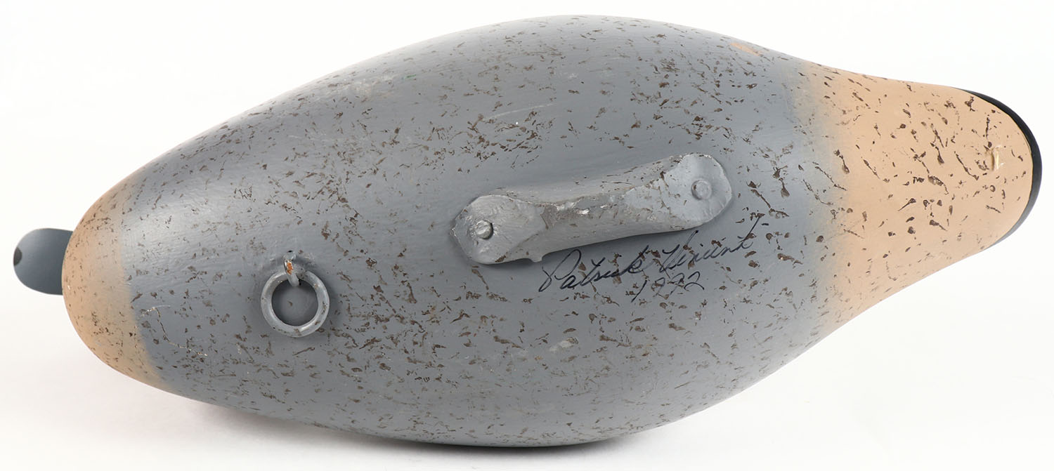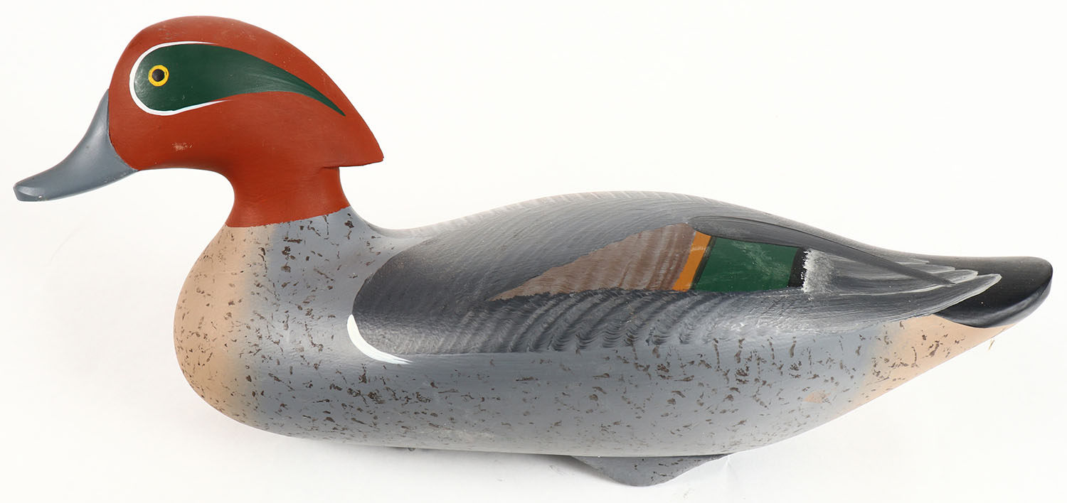 Greenwing Teal by Patrick ''Pat'' Vincent, Churchville, MD, painted eyes, solid wood, original paint, structurally excellent, signed on bottom, 13'' OAL. Grade: Excellent ++ - Value: 50 to 100