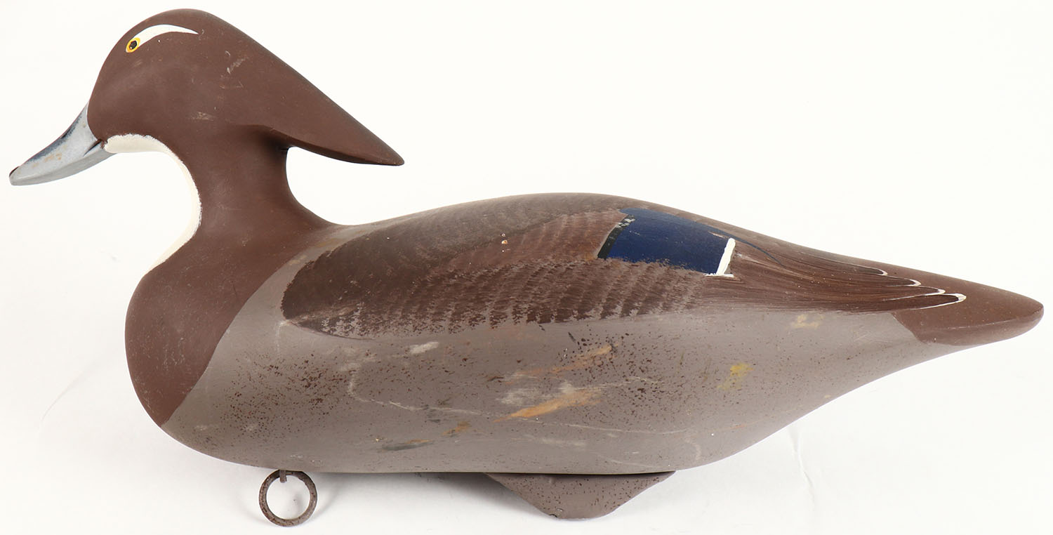 Woodduck Hen by unknown carver from MD, PE, solid wood, original paint, structurally excellent, 16'' OAL. Grade: Excellent - Value: 20 to 40