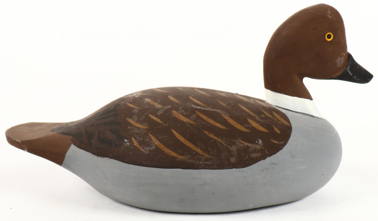 Miniature Golden Eye Hen by Jessie Urie, Rock Hall, MD, GE, solid wood, original paint, 6'' OAL. Grade: Excellent ++ - Value: 40 to 80