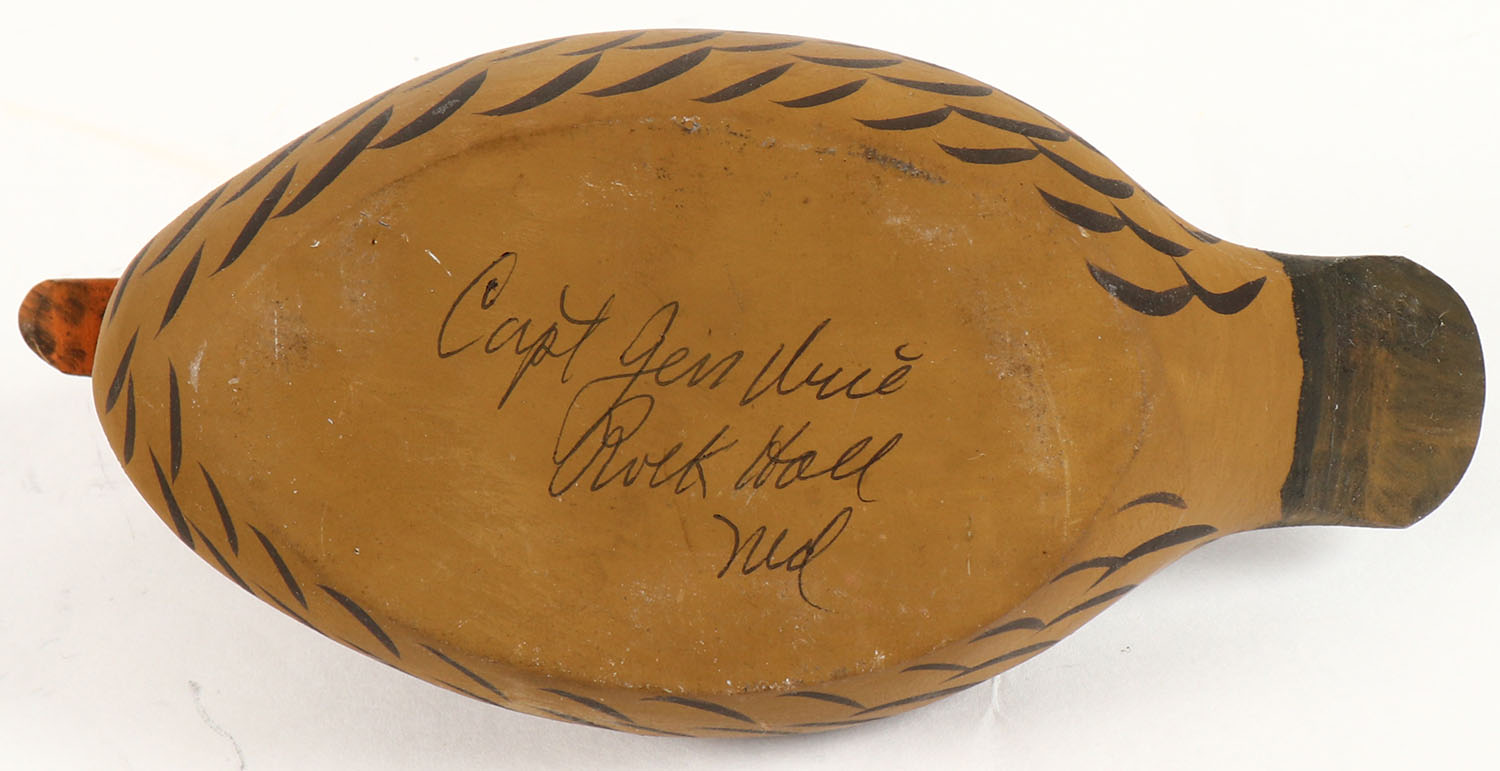 Miniature Mallard Hen by Jessie Urie, Rock Hall, MD, GE, solid wood, original paint, 6 1/2'' OAL. Grade: Excellent ++ - Value: 40 to 80