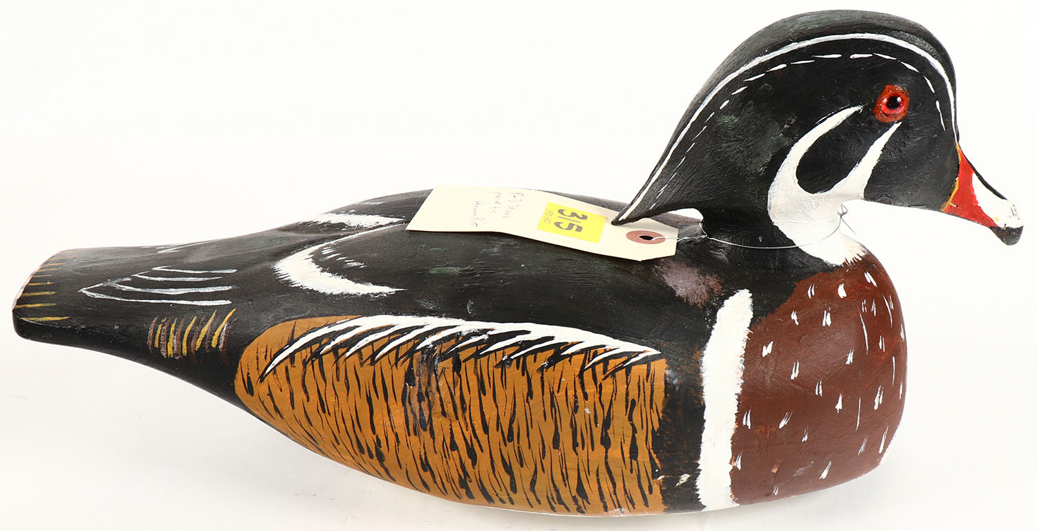 Woodduck Drake by Harvey Pitt P&D Decoys, No. 85 Duquoin, IL, GE Hollow Wood, excellent original paint, 14'' OAL. Grade: Excellent - Value: 30 to 90