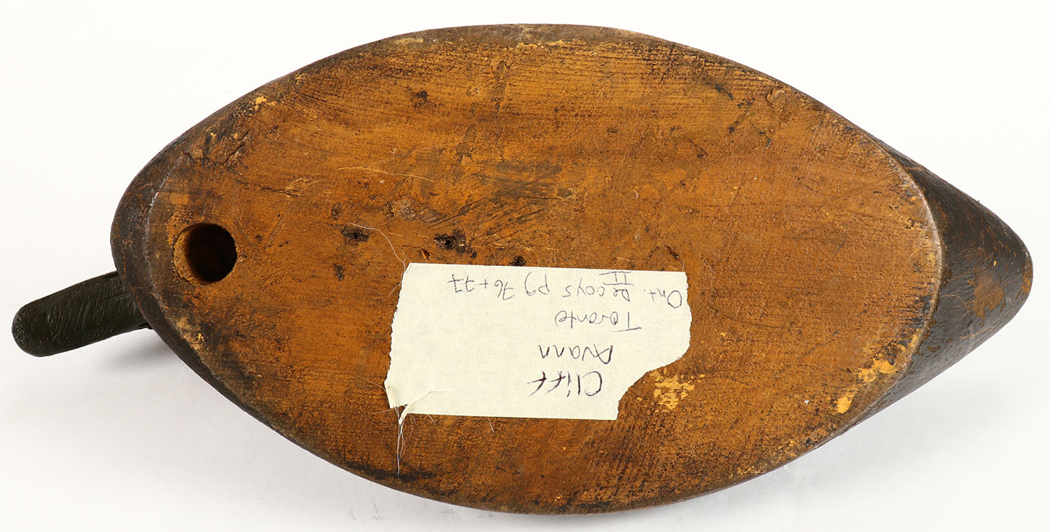 Black Duck by Cliff Avann, Ontario Canada, GE, solid wood, original paint, 15'' OAL. Grade: Very Good + - Value: 70 to 150