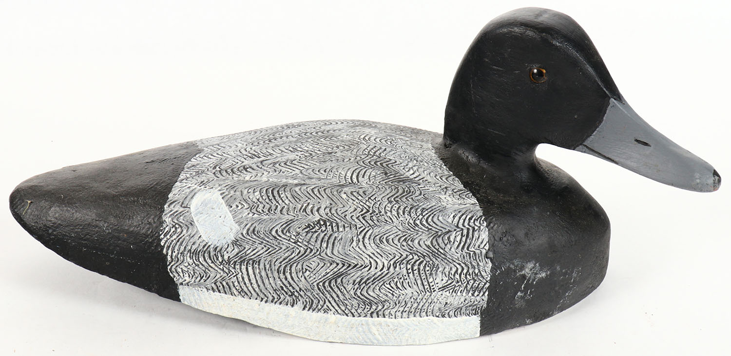 Bluebill Drake by unknown maker, GE, solid wood, original paint, structurally excellent, 12 1/2'' OAL. Grade: Excellent - Value: 10 to 30