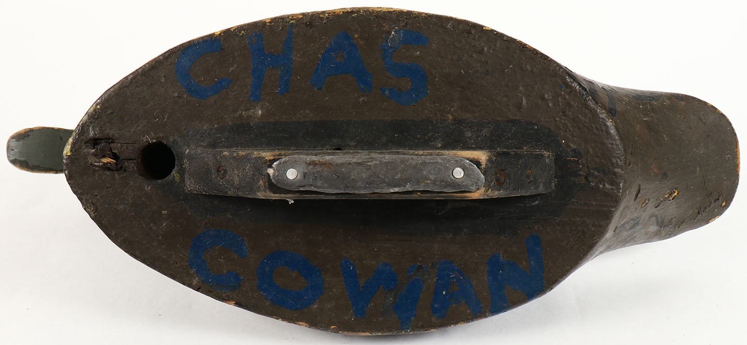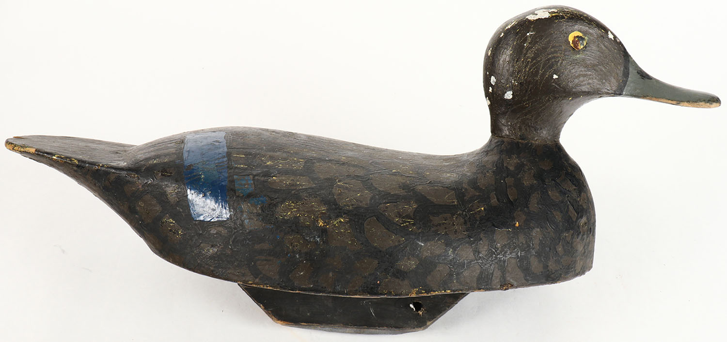 Black Duck by unknown maker, TE, solid wood, repaint, structurally excellent, 16 1/2'' OAL. Grade: Excellent - Value: 20 to 40
