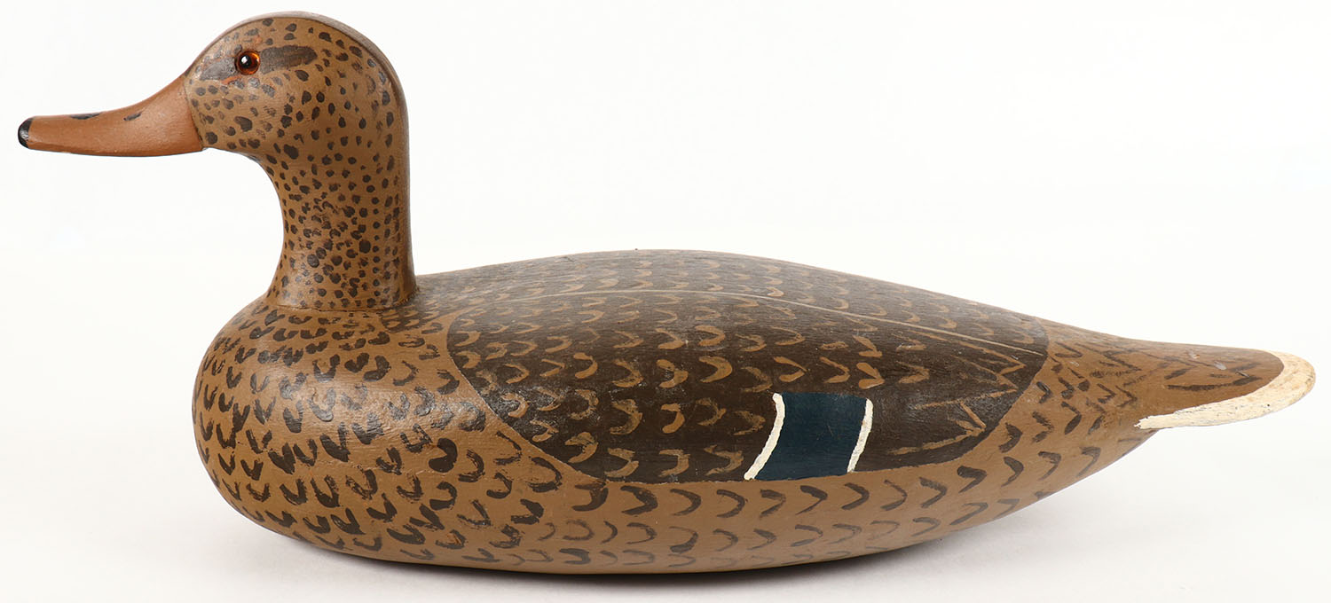 Mallard Hen by unknown maker, GE, hollow wood, original paint, structurally excellent, 16 1/2'' OAL. Grade: Excellent - Value: 30 to 60